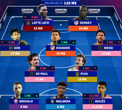 손흥민의 시장가치는 1700만 유로로 평가됐다. 이는 MLS 전체에서 두 번째로 높은 수치다. 인터 마이애미의 리오넬 메시도 1500만 유로의 가치를 인정받으며 베스트 일레븐에 이름을 올렸다. 인터 마이애미에서는 메시를 포함해 데 파울, 알바레스 등 세 명이 선정돼 가장 많은 선수를 배출했다.