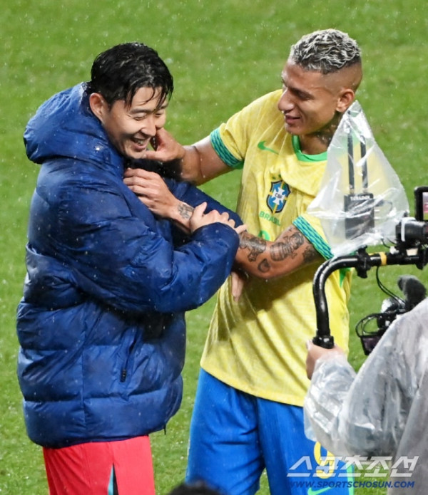 경기 종료 후 손흥민은 브라질 선수단 쪽으로 걸어가던 중 히샬리송을 발견했다. 두 사람은 서로를 향해 웃으며 다가와 뜨겁게 포옹했다.