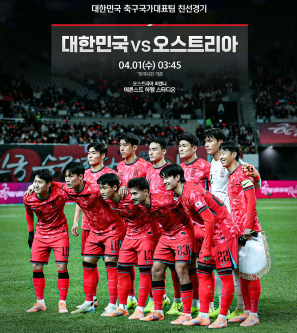 경기는 오는 4월 1일 오전 3시 45분(한국 시간 기준) 오스트리아 비엔나 에른스트 하펠 스타디온에서 열린다.