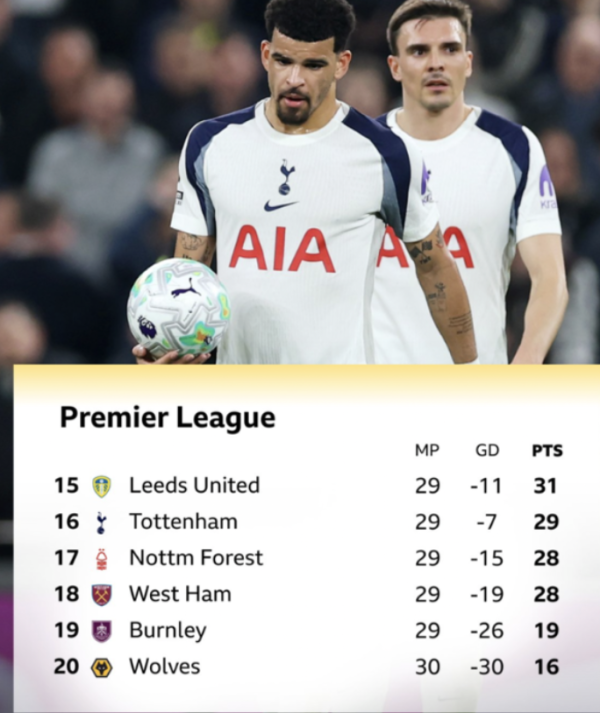 팀이 분해되지 않기 위해선 강등 위기를 모면해야 한다. 토트넘은 앞으로 리버풀(원정), 노팅엄 포레스트(홈), 선덜랜드(원정), 브라이튼(홈), 울버햄튼(원정), 아스톤 빌라(원정), 리즈 유나이티드(홈), 첼시(원정), 에버턴(홈)과의 맞대결이 남아 있다.