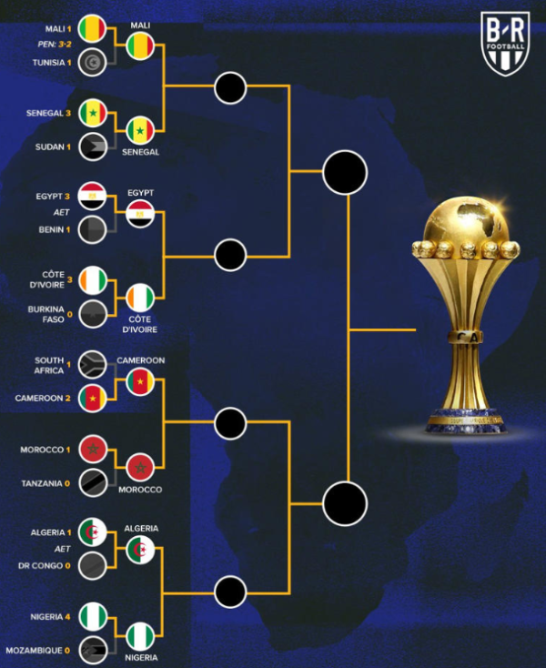 모로코에서 열리고 있는 아프리카 네이션스컵은 7일(한국시간) 알제리-콩고민주공화국, 코트디부아르-부르키나파소의 16강전을 끝으로 8강 대진이 확정됐다. 대진표상 8강은 말리(FIFA 랭킹 53위)-세네갈(19위), 이집트(35위)-코트디부아르(42위), 카메룬(57위)-모로코(11위), 알제리(34위)-나이지리아(38위)의 맞대결로 각각 펼쳐진다.