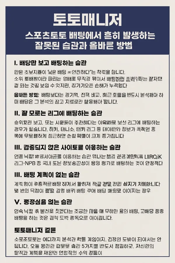 스포츠토토 배팅을 하다 보면 누구나 한 번쯤 겪는 공통적인 실수와 잘못된 습관들이 있습니다.